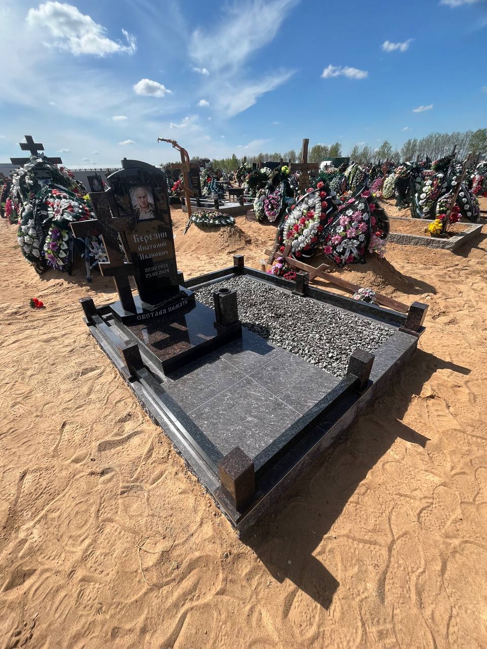 Эксклюзивный Р-43 - отличный способ выделить могилу среди других на кладбище. Информация о покойном могут быть реализованы любым способом. В представленном примере портрет помещен в бронзовую рамку, дополняющую инициалы покойного и даты его рождения и смерти. Уникальный узор из природного камня украшает поверхность памятника Р-43. Эксклюзивный Р-43 обозначает вечную память об ушедшем и неугасающую боль утраты.