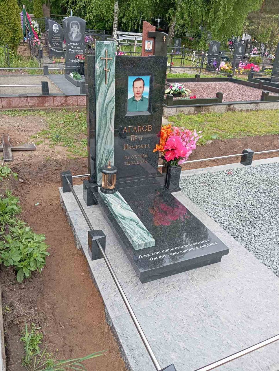Эксклюзивный Р-50 - прекрасный способ выделить могилу среди других на кладбище. Информация о покойном могут быть нанесены любым способом. В представленном примере портрет помещен в бронзовую рамку, дополняющую инициалы покойного и даты его рождения и смерти. Уникальный узор из естественного камня украшает поверхность памятника Р-50. Эксклюзивный Р-50 обозначает вечную память об ушедшем и неугасающую боль утраты.
